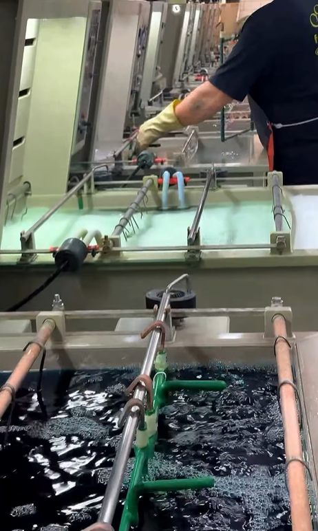 O metal base pode ser latão, cobre ou outras ligas. Após o preparo adequado, a peça passa por banhos químicos até receber o metal nobre desejado.
